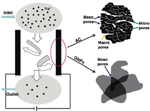 合適的活性炭材料是電容去離子技術裝置中最重要的組分,因為它們被用作在電吸附過程中起重要作用的電極。一個研究小組,現在已經開發出一種使用活性炭納米片的電容去離子技術應用程序電容去離子電極。他們發現石墨烯電極比常規使用的活性炭材料具有更好的電容去離子性能。