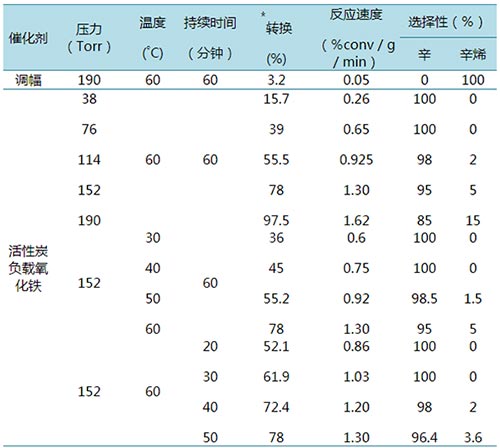 表1:活性炭負載氧化鐵納米粒子在辛醇氧化脫氫反應中的催化性能。